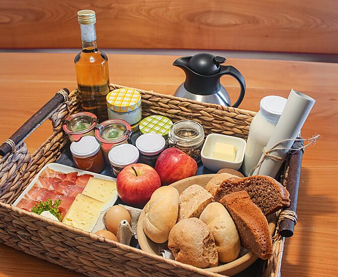 - Frühstück in der Bauernstube, Frühstück im Freien (je nach Saison), Frühstücksbuffet, Frühstückskorb