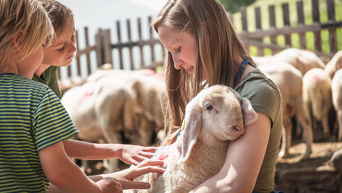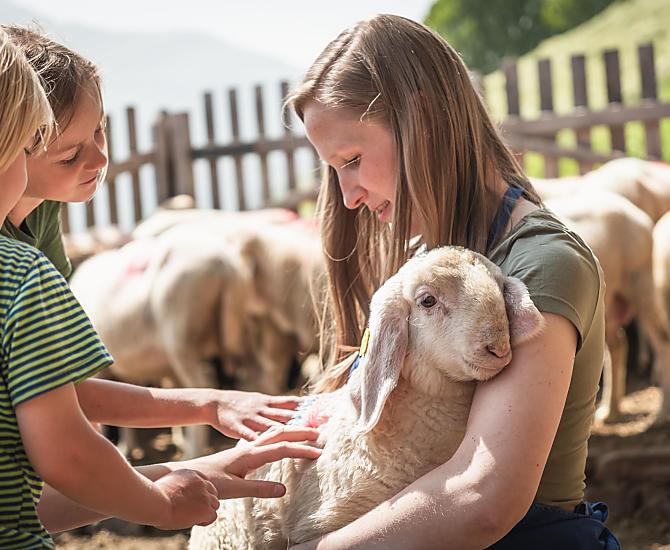 Wir hatten hier auf dem Gurschlhof eine wunderschöne Woche zu acht im Ferienhaus. Der Hof ist sehr authentisch und Eva hat sich viel Zeit für die Kinder genommen. Das Highlight: Lämmchen mit der Flasche füttern.