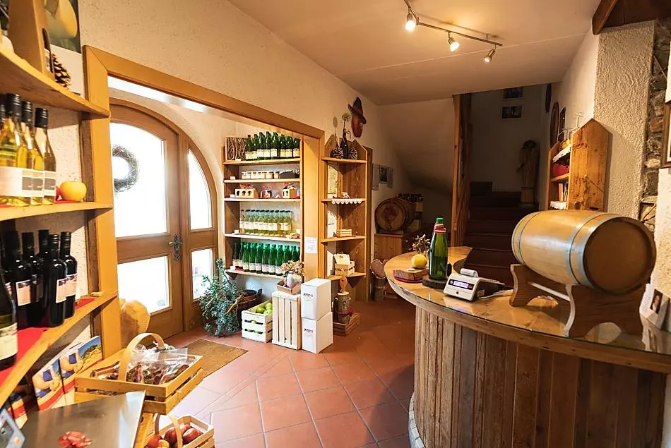 Das Haus besteht aus drei Ferienwohnungen sowie unserer eigenen Wohnung. Im Parterre befindet sich eine Werkstätte und im Untergeschoss der Hofladen, eine Garage für landwirtschaftliche Geräte, der Weinkeller, eine Selchkammer, ein Verarbeitungsraum für landwirtschaftliche Produkte sowie ein Magazin.