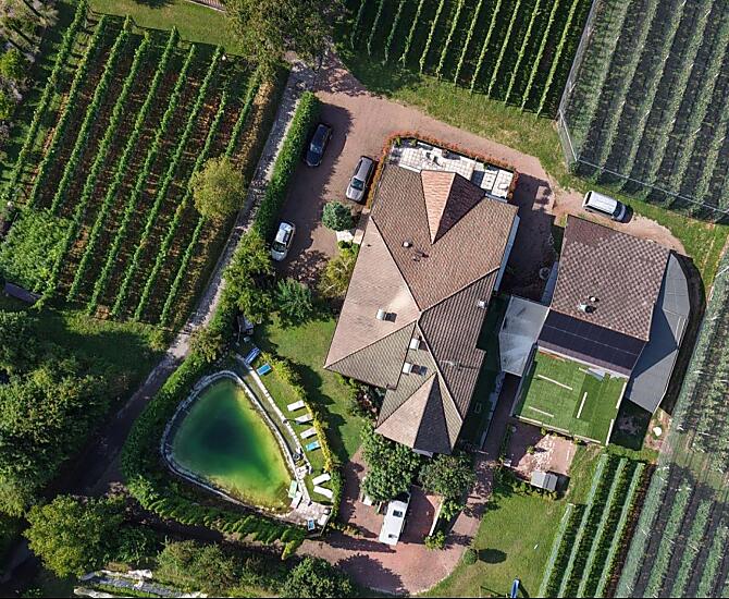 Unser Hof liegt in Schreckbichl bei Girlan, ca. 1,5 km vom Dorfzentrum entfernt. Genießen Sie Ihren Urlaub in ruhiger und sonniger Lage, umgeben von Apfelbäumen und Weinreben, direkt am Waldesrand. Eine angenehme Abkühlung in unserem Badeteich oder eine Pause auf der Liegewiese nach einer schönen Wanderung oder Fahrradtour bedeutet Erholung pur. Für Kinder gibt es Schaukeln, einen Sandkasten und jede Menge Platz zum Ball spielen und Herumtoben.