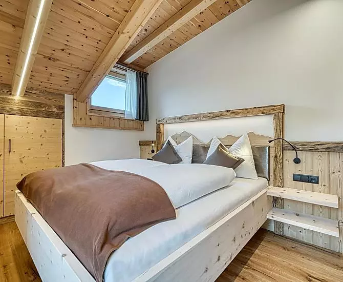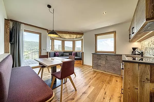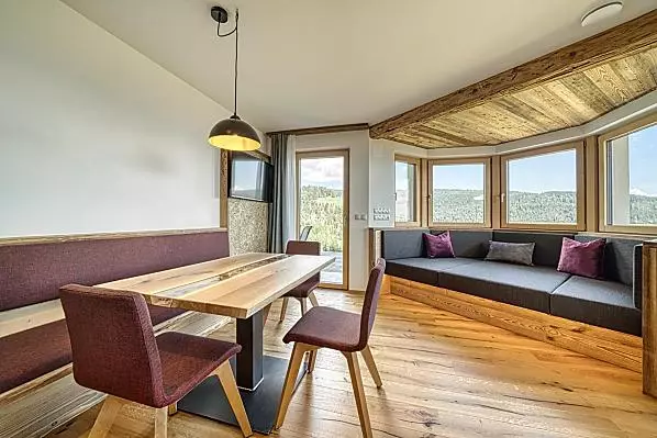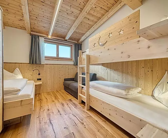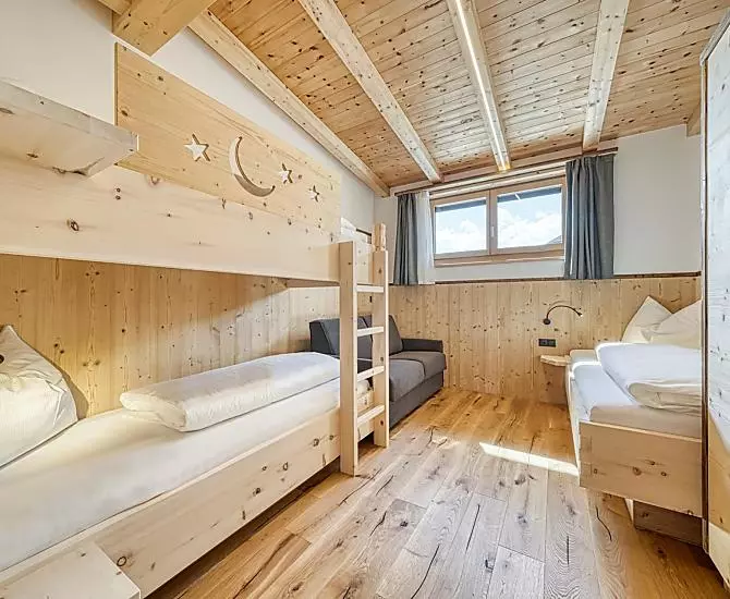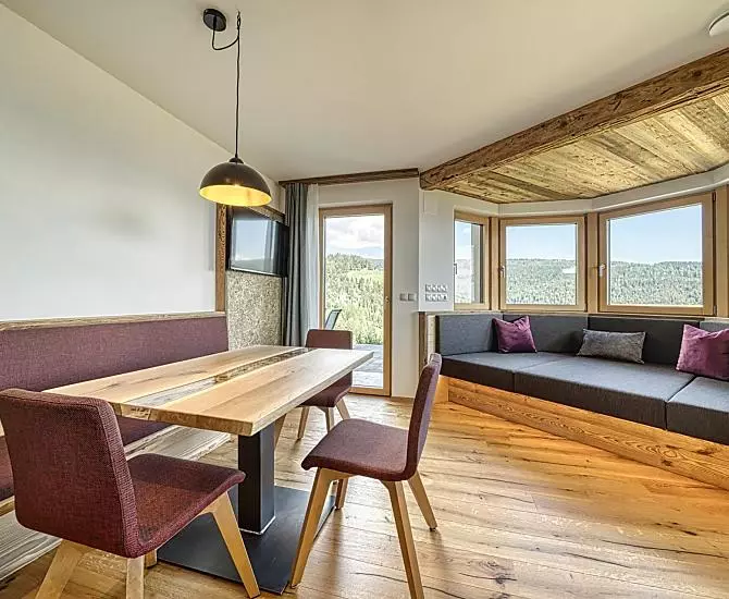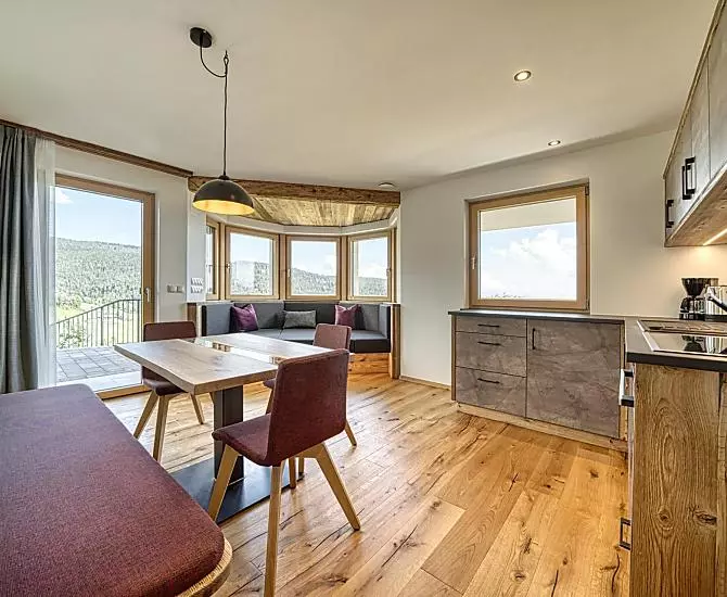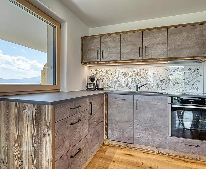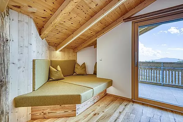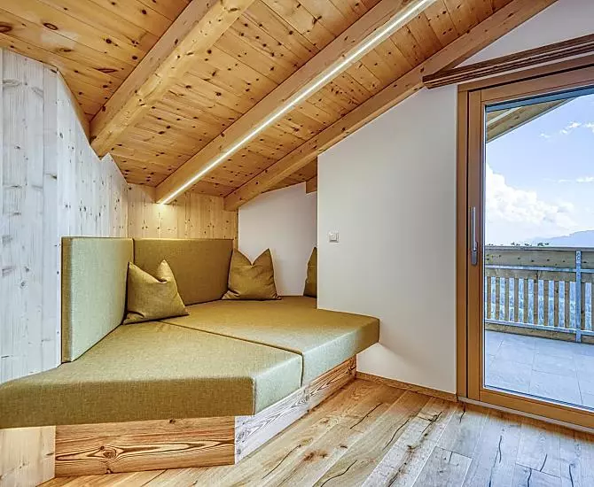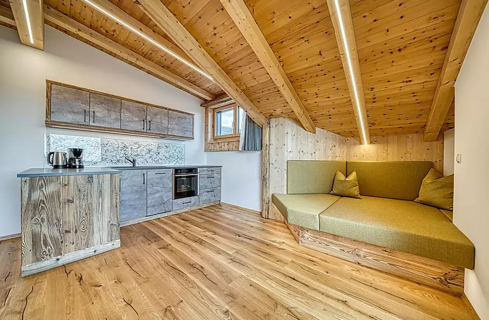 Wohnen Sie in 3 geräumigen 60 m² großen, mit viel Zirbenholz ausgekleideten Wohnungen mit herrlichem Panoramablick. Ein kleiner Spielplatz und verschiedene Tiere warten auf die Streicheleinheiten der Kinder.