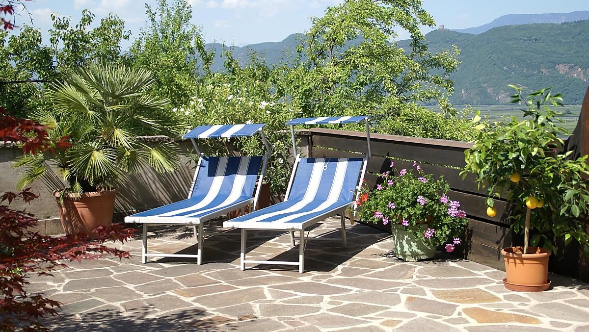 Der Blick über die Weinberge reicht hin bis zum Kalterer See. Die nahegelegene Bushaltestelle sowie die von uns ausgehändigte kostenlose Mobil Card lädt unsere Gäste zur umweltschonenden Erkundung Südtirols mit öffentlichen Verkehrsmitteln ein. Auch Radwege und Wanderwege befinden sich in unmittelbarer Nähe unseres Hofes und tragen zu einem gemütlichen Urlaub bei.