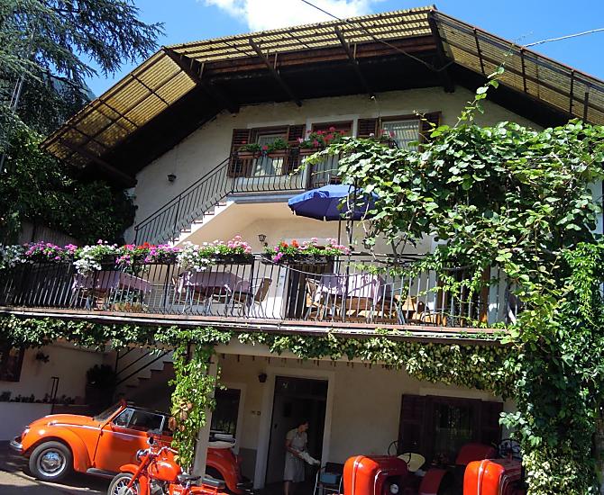 Familienfreundlicher Weinbauernhof in ruhiger Ortsrandlage am Fuße des Mendelgebirges. Wir bearbeiten unsere Weinberge, die direkt am Kalterer See liegen. Dort befindet sich auch unser Weinkeller und der Hofladen mit Verkauf von Wein, Säften, Marmeladen, Obst und Gemüse. Unsere Gäste schätzen es sehr im Haus zur Traube auf der Terrasse die schöne Aussicht, das Frühstück oder ein gutes Glas Wein zu genießen.