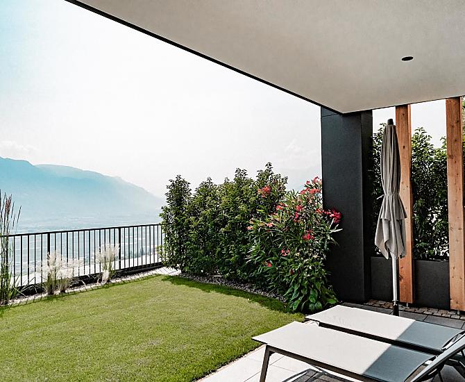 So muss sich Natururlaub anfühlen: spürbar zur Ruhe kommen, entschleunigen und alles um sich herum eine Zeit lang vergessen. Die frische Luft atmen, die Ausblicke auf den Talkessel vom Meraner Land und die Berggipfel der Umgebung auf sich wirken lassen und einfach mal abschalten vom Alltag. Unsere neuen Ferienwohnungen Hillepranter liegen umgeben von Weinbergen, Obstwiesen und am Rande eines Laubwaldes oberhalb von Marling, ganz in der Nähe von Meran.