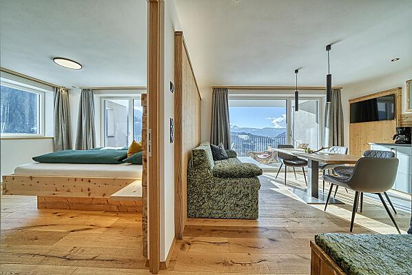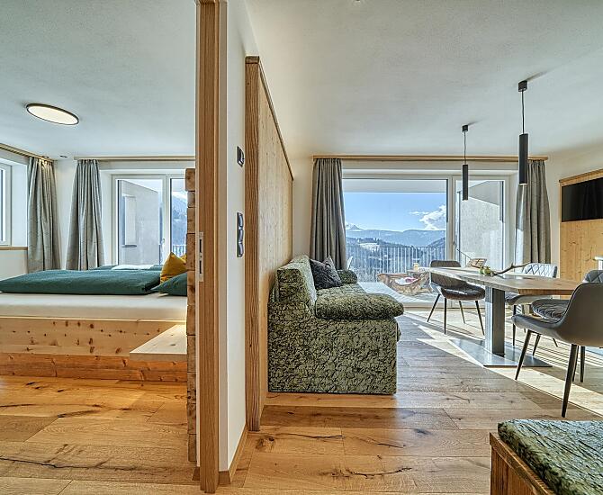 Unser Hof liegt auf 1.300 m über Meran im Bergdorf Hafling und bietet Urlaub auf dem Bauernhof mit exklusiven und modernen Apartments aus heimischem Holz. Jedes Apartment verfügt über eine große, private Panoramaloggia, die den Blick über Wiesen, Wälder und Berge freigibt. Wander- und Panoramawege beginnen direkt vor der Tür, das Skigebiet Meran 2000 ist in nur 15 Minuten mit dem Auto erreichbar. In unserer Hofecke können Gäste Qualitätshonig aus unserer eigenen Imkerei, Himbeeren, Eier und weitere hofeigene Produkte entdecken und genießen – so bringt der Hof die Natur auf den Tisch. Eine große Liegewiese lädt zum Entspannen und Spielen ein und wer möchte, kann im Apartment private Wellness-Tage genießen. Überall spürt man die Ruhe der Berge, tankt Energie und findet Verbindung zur Natur – ein Ort, an dem Stille, Licht und bewusste Lebensqualität zu einem unvergesslichen Erlebnis werden.