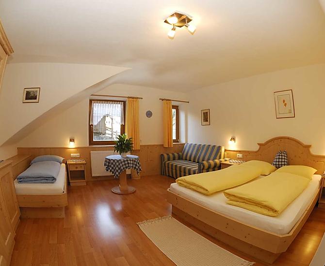 Hallo und herzlich willkommen auf unserem idyllischen Hof Zerund! Wir, das sind Walter, Judith die Kinder Carmen, Martin und Arno sowie Opa Richard und Oma Johanna freuen uns schon darauf, ein Teil Ihres Urlaubs zu sein. Erleben Sie einen erholsamen und sorglosen Bauernhofurlaub in den Dolomiten inmitten grüner Wiesen. Auf unserem Hof Zerund wird es Ihnen und Ihren Kindern ein Leichtes sein, dem Alltag zu entfliehen. Ein Urlaub auf dem Bauernhof mit Kindern macht nicht nur viel Freude, er beinhaltet auch pädagogisch wertvolle Erfahrungen für die Kids! Im Stall kann man von oben durch einen Glasboden in den Melkstand gucken und dem Bauer Walter beim Melken zuschauen, zu den Kälbchen hüpfen und Sie füttern, Ziegen und Hasen streicheln – jeder Tag wird eine Entdeckungsreise sein. Sie können sich derweil in aller Ruhe zurücklehnen und mit dem Wissen, dass Ihr Nachwuchs sich in der sicheren Umgebung des Hofs bewegt, Ihren Gedanken freien Lauf lassen.