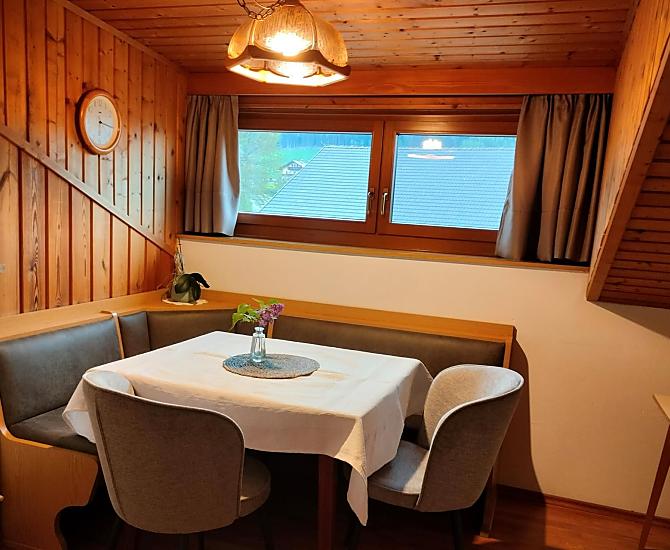 - Frühstücksraum (Holzofen, Holzboden, SAT-TV, Bücher)
