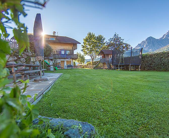 Wir halten Kühe, Kälber, Hasen, Hühner, Ziegen, Katzen und einen Hofhund. Gerne dürfen die Kinder beim Füttern der Tiere helfen und einiges dazulernen! Zum Entspannen bieten wir eine große Liegewiese mit Teich sowie eine Gartensauna mit Panoramablick auf die Sextner Dolomiten. Für die Kinder gibt es einen großen Spielplatz mit Schaukel, Rutschbahn, Sandkasten, Trampolin, Tischtennis und Tischfußball.