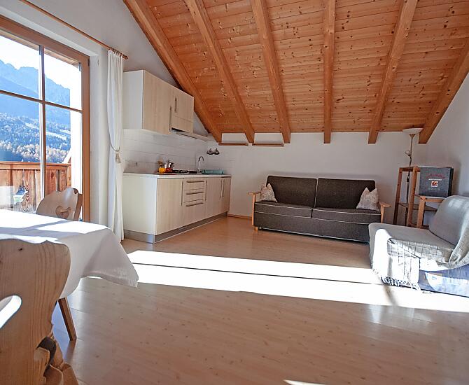 In unserem Ferienhaus – nur einige Gehminuten vom Dorfzentrum entfernt – bieten wir Ferienwohnungen an, liebevoll eingerichtet, im rustikalen Stil und mit verschiedensten Dekorationen verfeinert. Die Ferienwohnungen sind zusätzlich mit Frühstück buchbar. Sie sind zur Südseite ausgerichtet und erlauben einen wunderschönen Ausblick über Innichen und die beeindruckenden Gipfel der Sextner Dolomiten.