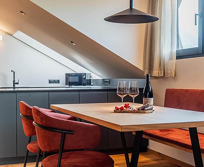 Genießen Sie unvergessliche Tage in unserer frisch renovierten, lichtdurchfluteten Ferienwohnung, die modernen Komfort mit ländlicher Idylle verbindet. Die großzügige, offene Wohnlandschaft lädt zum Entspannen ein und bietet einen herrlichen Blick auf die malerischen Weinberge von St. Magdalena.