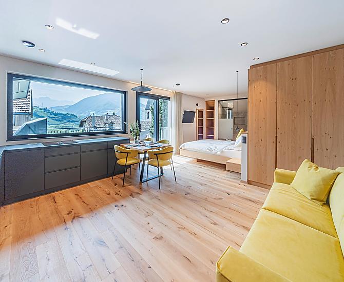 - Geräumige Terrassen mit Blick auf Bozen und die Berge
