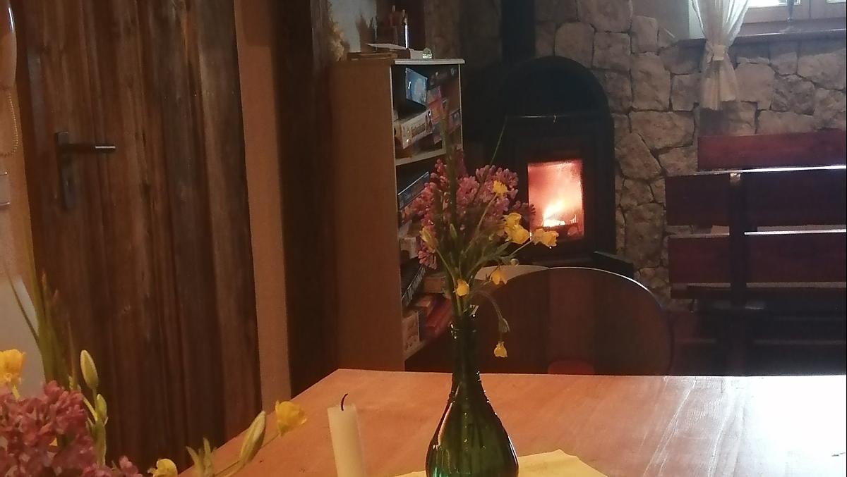 - Aufenthaltsraum (Holzofen, Spiele, Fernseher, SAT-TV, Bücher)