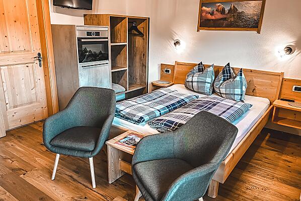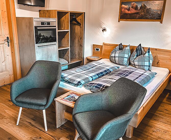 Der 200 Jahre alte Hof liegt 1.460 Meter ü. d. M. und wurde im Jahr 2009 von Gerlinde und Peter renoviert. Mit viel Hingabe und sehr viel Geschick wurden Ferienwohnungen errichtet, welche den Gästen einen unvergesslichen Urlaub mit herrlichem Ausblick auf das Weltnaturerbe Dolomiten bieten.
