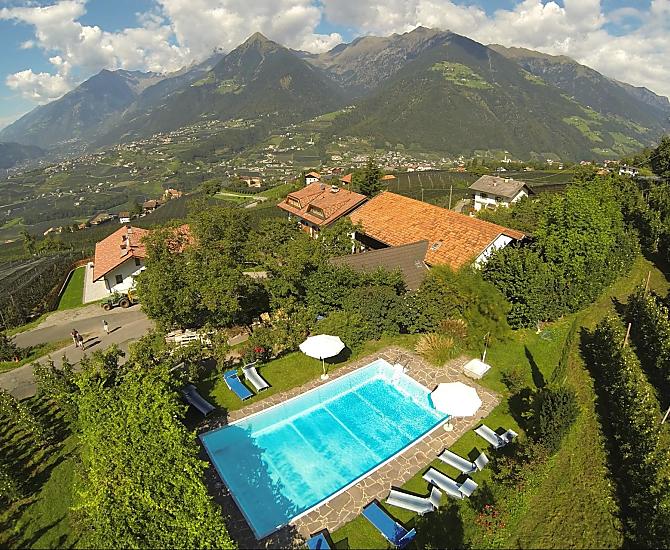 Erleben Sie bei uns Südtiroler Gastfreundschaft in ruhiger Lage inmitten unserer Obstgärten. Ideal zum Wandern mit traumhaftem Ausblick auf das Burggrafenamt.