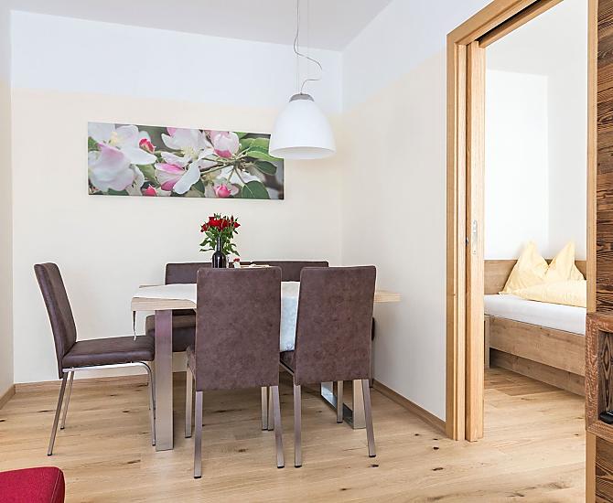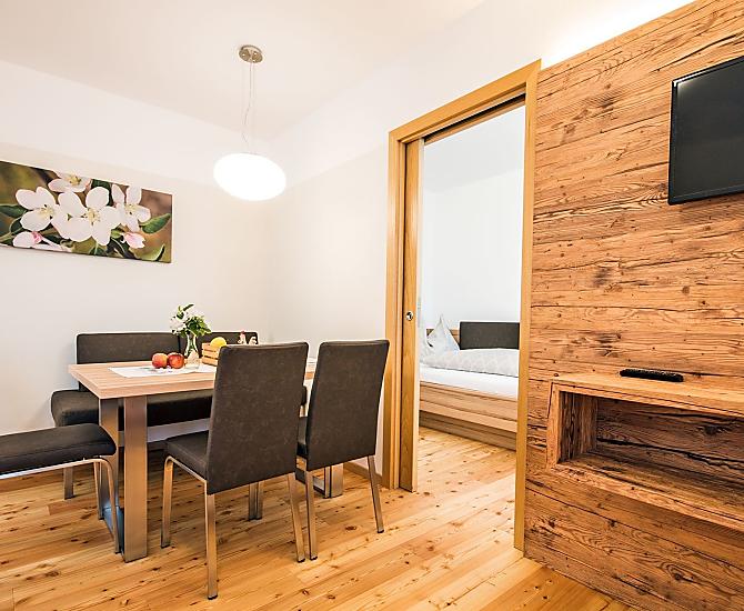 Der Larcherhof liegt im Grünen, eingebettet in Apfelanlagen und doch zentral. Der ideale Ausgangspunkt für unvergessliche Wanderungen.