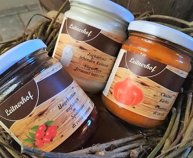 - Fruchtaufstriche (Erdbeere Fruchtaufstrich, Himbeere Fruchtaufstrich, Kirschen Fruchtaufstrich, Marille Fruchtaufstrich, Rote Johannisbeere Fruchtaufstrich)