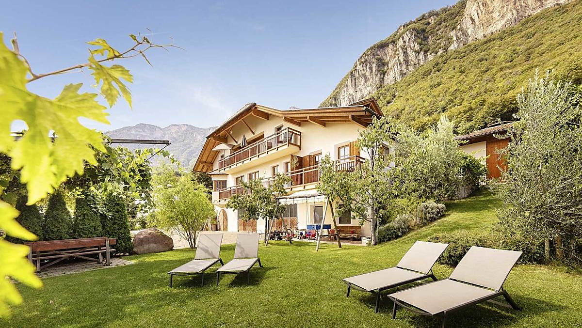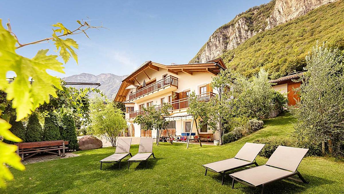Unser neu erbauter Ferienhof liegt umgeben von Weinreben am Rande des historischen Ortskerns von Kurtatsch. Auch wenn Sie bei uns im Grünen wohnen, bis zu den Restaurants und Geschäften sind es gerade mal fünf Gehminuten. Die Olivenbäume ums Haus und auf der Spiel- und Liegewiese zeugen vom mediterranen Klima bei uns in Südtirols Süden. Seit 2009 gewinnen wir aus unseren eigenen Oliven sogar hochwertiges Olivenöl!
