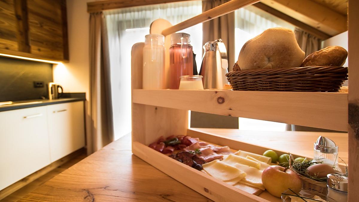 - Hofeigene Produkte beim Frühstück: Milch, Joghurt, Käse, Andere Milchprodukte, Eier, Fruchtaufstriche, Sirup, Gelees, Kräutertee, Kräutergewürze, Backwaren, Frisches Gemüse je nach Saison