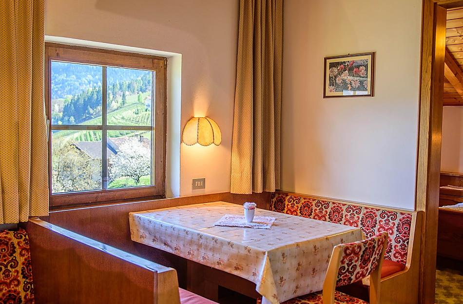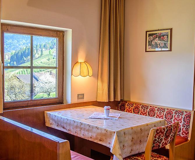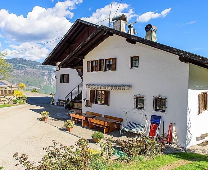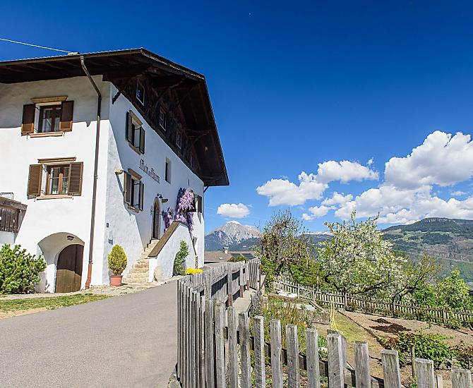 Unser renovierter, denkmalgeschützter Bauernhof liegt inmitten von Obstwiesen und Kastanienhainen in einer ruhigen und sonnigen Gegend auf 650 Metern Meereshöhe in Lana/Völlan.