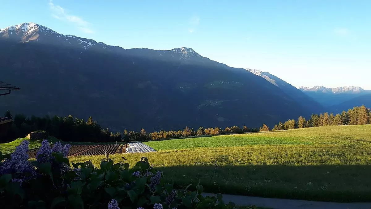 Inmitten von Wiesen und Wäldern liegt der Mairinghof auf einem Hochplateau auf 1450 m.ü.d.M. am Schlanderser Nördersberg.