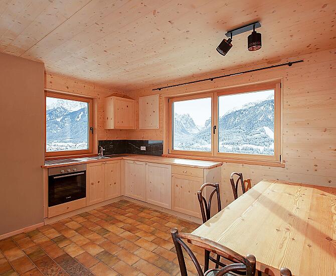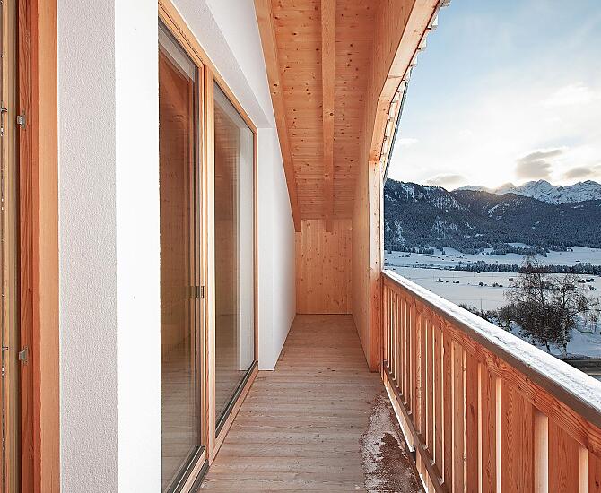 Schöner, neuer Bauernhof in Panoramalage, umgeben von den wunderbaren Bergspitzen der Dolomiten, erbaut in Thoma100-Holzsystem und verbunden mit dem Vastu-Gedanken.