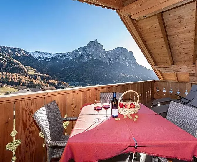 Wir, die Familie Rier, bewirtschaften den Marmsolhof, ein Milchviehbetrieb in Kastelruth und züchten seit Generationen das Tiroler Grauvieh. Die Sommermonate verbringen unsere Tiere auf den Weiden der Seiser Alm. Zum Hof gehört die Marmsolerschwaige, die sich auf der Seiser Alm in Saltria befindet. Unser Hof befindet sich in St. Valentin bei Kastelruth, in sonniger, ruhiger Lage umgeben von Wiesen und Wäldern mit direktem Blick auf den Schlern und die umliegende Bergwelt. Idealer Ausgangspunkt für zahlreiche Wanderungen und 100 m von der Skibushaltestelle, von welcher Sie zur Umlaufbahn in Seis gelangen, entfernt. Wir vermieten am Hof drei mit sehr viel Liebe eingerichtete Ferienwohnungen für 2 - 8 Personen und auf der Almhütte eine große Ferienwohnung für 2 - 8 Personen.