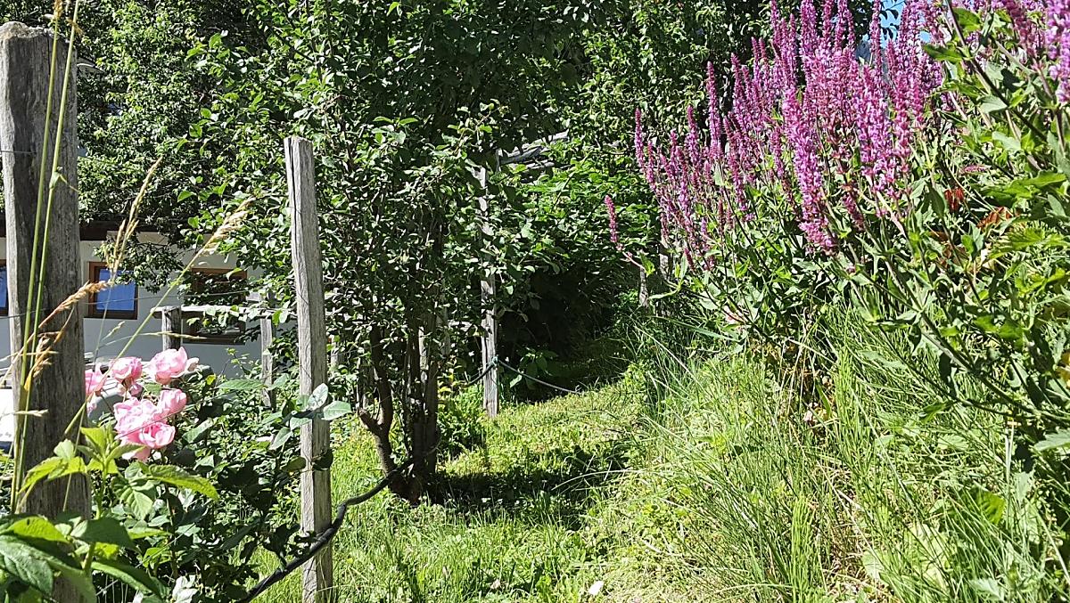 - fantastische Aussicht auf blühende Wiesen und überwältigende Berge