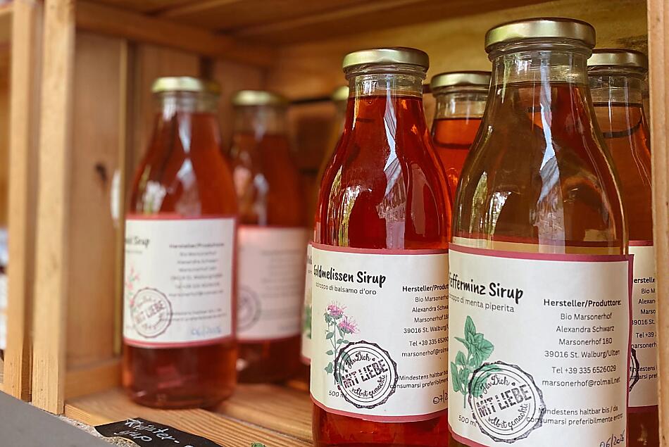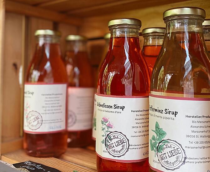 - Sirup (Bergkräutersirup, Brombeersirup, Himbeersirup, Holunderblütensirup, Melissensirup, Pfefferminzsirup, Roter Johannisbeersirup, Schwarzer Johannisbeersirup, Zitronenmelissensirup)