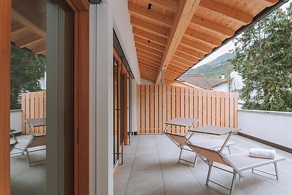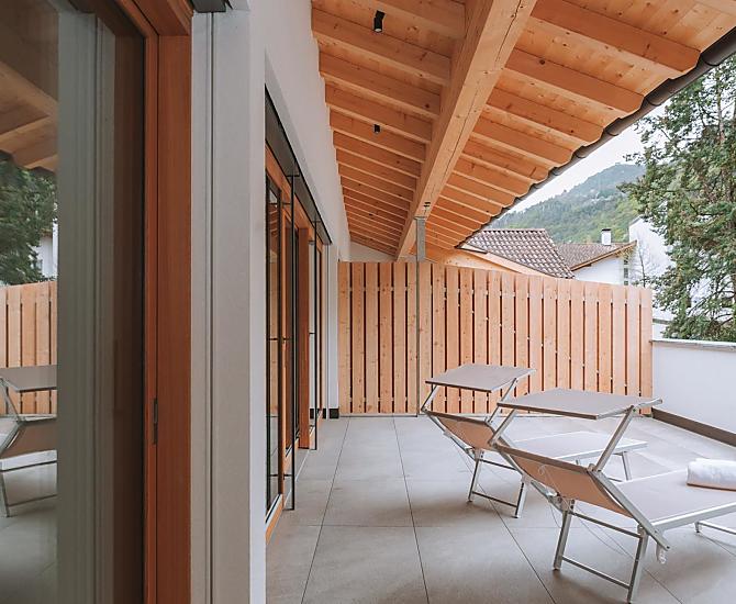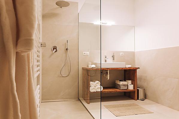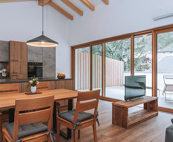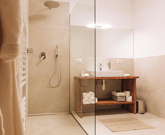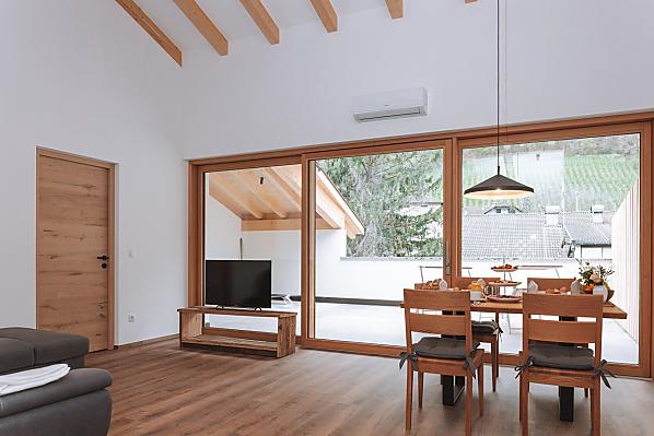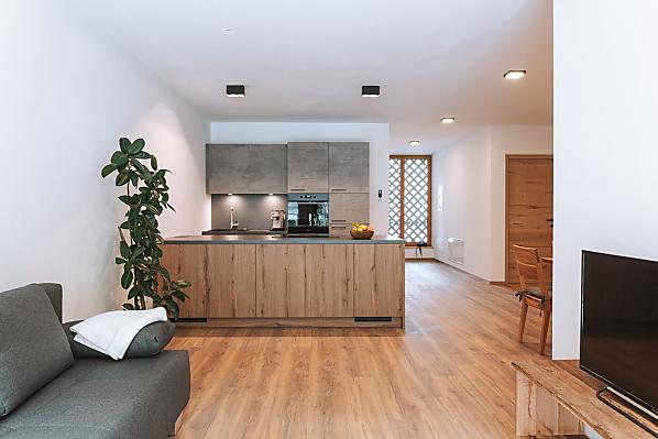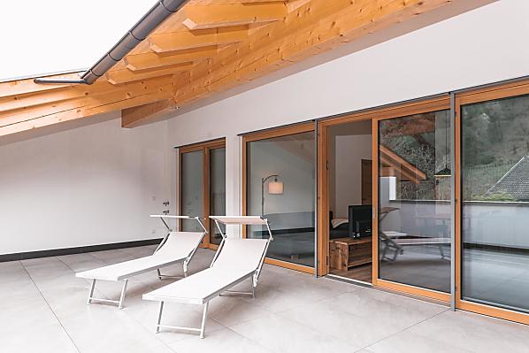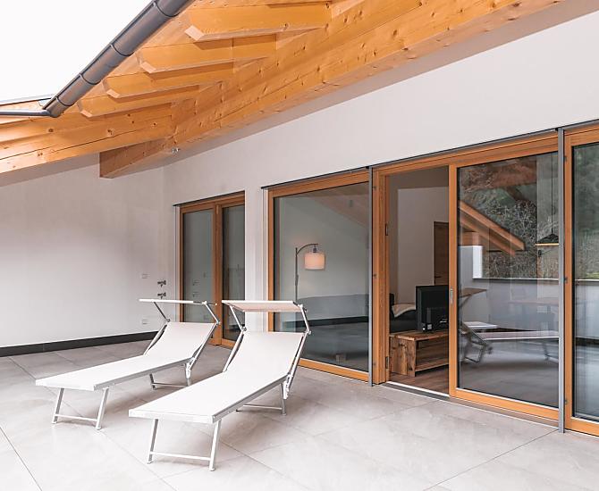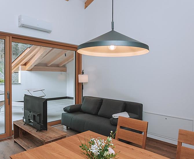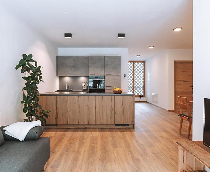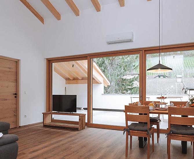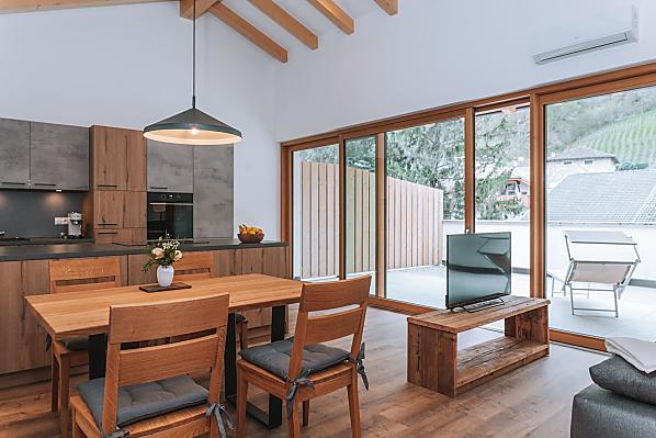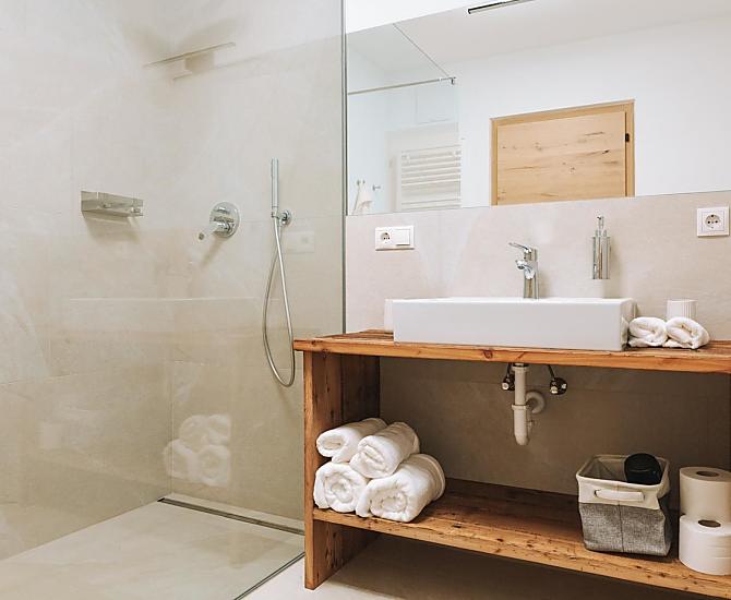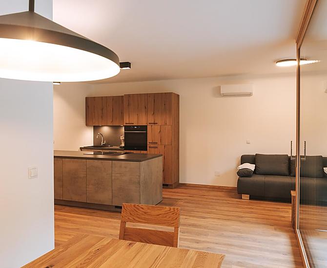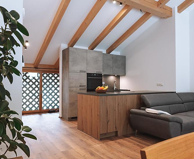Die Ferienwohnungen entstanden als neuer und moderner Anbau, anstelle des alten und baufälligen Wirtschaftsgebäudes.
