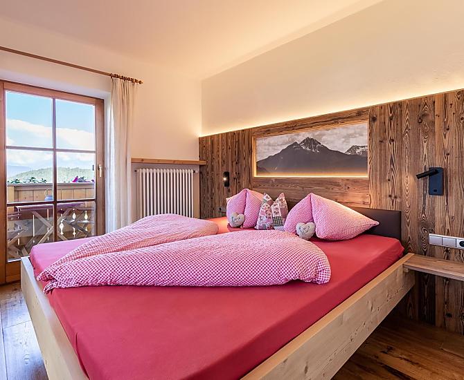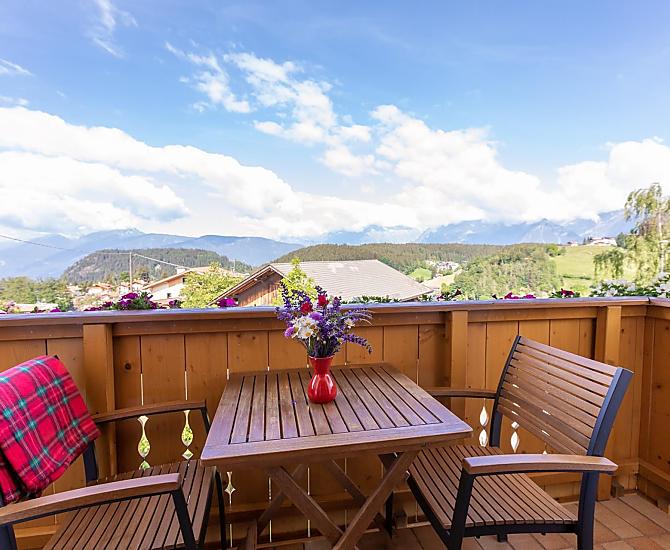 Unser kinderfreundlicher Hof bettet sich ein in ein traumhaftes Panorama auf dem Hochplateau des Tschögglberges, oberhalb von Meran auf 1360 Metern über dem Meeresspiegel, inmitten eines Wanderparadieses in ruhiger Waldrandlage, mit wunderbarem Blick auf die Texelgruppe.