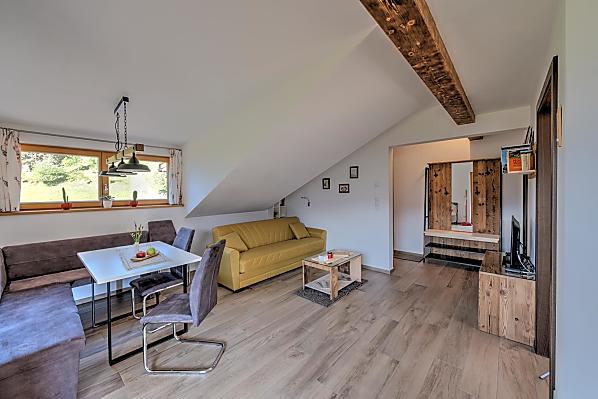 Ein Hof inmitten einer wundervollen Naturidylle - der perfekte Ort für Ruhe und Erholung. Die beiden neu eingerichteten Ferienwohnungen bieten wunderschönen Ausblick auf die umliegenden Berge. Außerdem freuen wir uns Sie in unserem Hofschank verwöhnen zu dürfen.