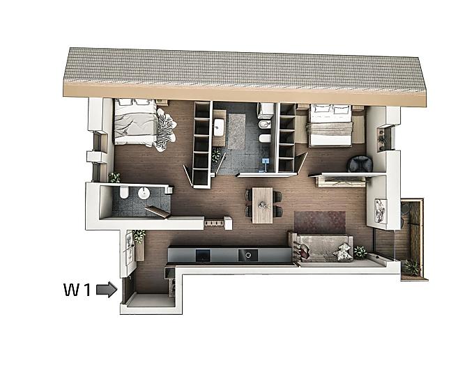 2-4 Personen (2 fixe Betten) 56m²