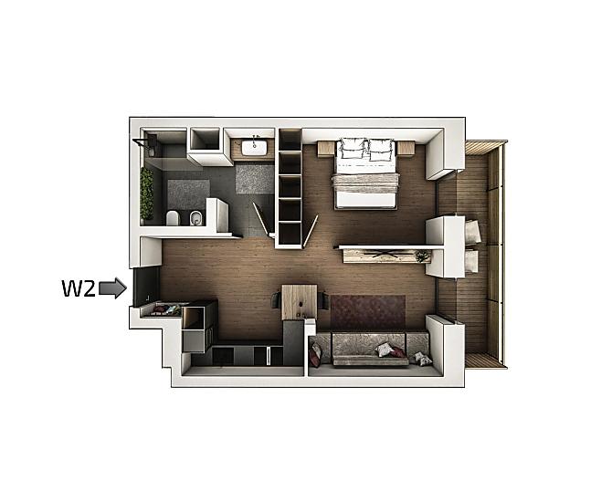2 Personen (2 fixe Betten) 46m²
