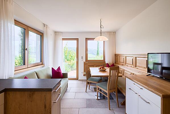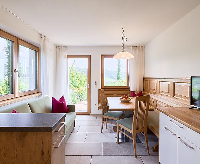 - natürliche Materialien wie Holz und Stein in den Ferienwohnungen