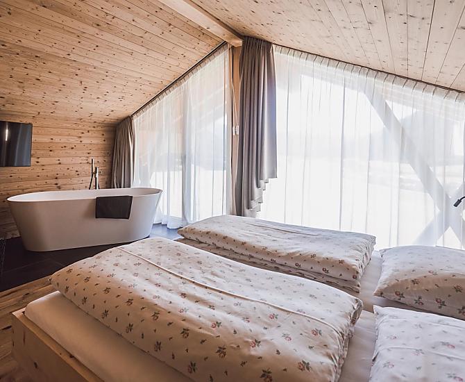 Herzlich umsorgt am Mudlerhof bei Familie Walder! Unsere exklusiven Ferienwohnungen mit Sauna, Biwak und Sternegucker bieten ein gemütliches Ambiente zum Relaxen und Kraft tanken. Bei uns bekommen Sie einen guten Einblick in das Hofleben – perfekt für Familien. Auch wenn das Gsieser Tal und die nahen Dolomiten schöne Ausflüge aller Art bieten, bleibt man gerne am Hof und lässt sich mit Köstlichkeiten des Hauses verwöhnen. Außerdem gibt es auf dem Hof viel zu erleben: Katzen streicheln, Kälbchen füttern, Kühe melken und Hasen liebkosen. Hat Superhenne Hanna schon das Frühstücksei gelegt? Ein weiteres, besonderes Erlebnis ist der Ausflug auf die eigene Friedbergalm im Sommer. Im Winter, wenn Frau Holle die Betten schüttelt, geht es hinaus in die weiße Winterpracht, auf die Rutsch- und Rodelbahn vor der Haustür oder die Gsieser Loipe, zum Skitouren gehen und Skifahren oder zum Winterwandern auf verschneiten Wegen hin zu den urigen Almhütten. Wir freuen uns auf euch!