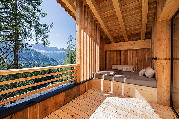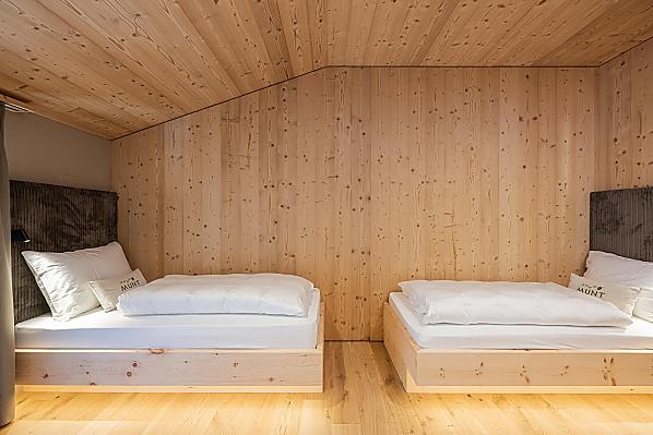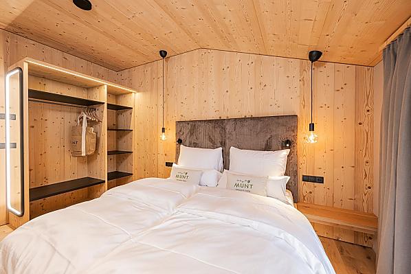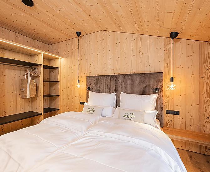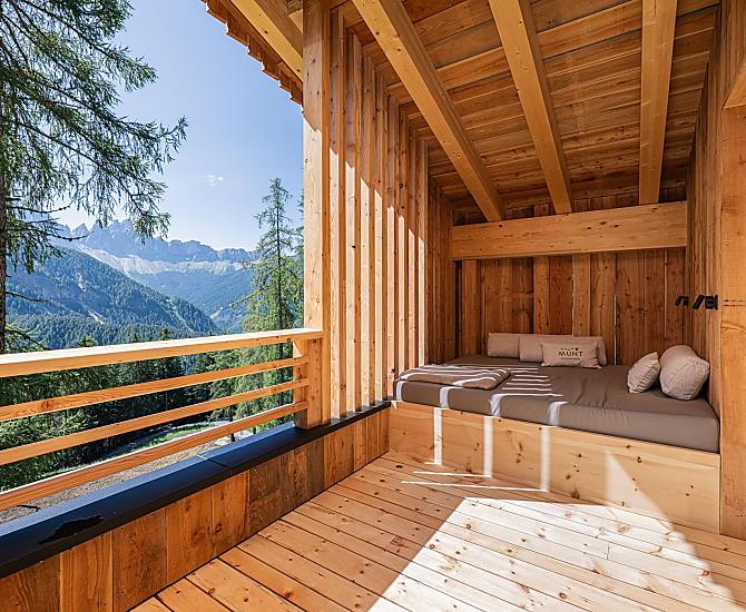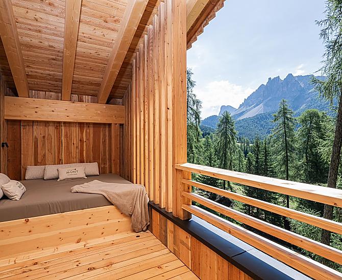Munt liegt auf der Sonnenseite von Villnöss, inmitten der Dolomiten, eingebettet in einem Lärchenwald und natürliche Almwiesen und mit einem atemberaubenden Blick auf die majestätischen Geisler Spitzen.