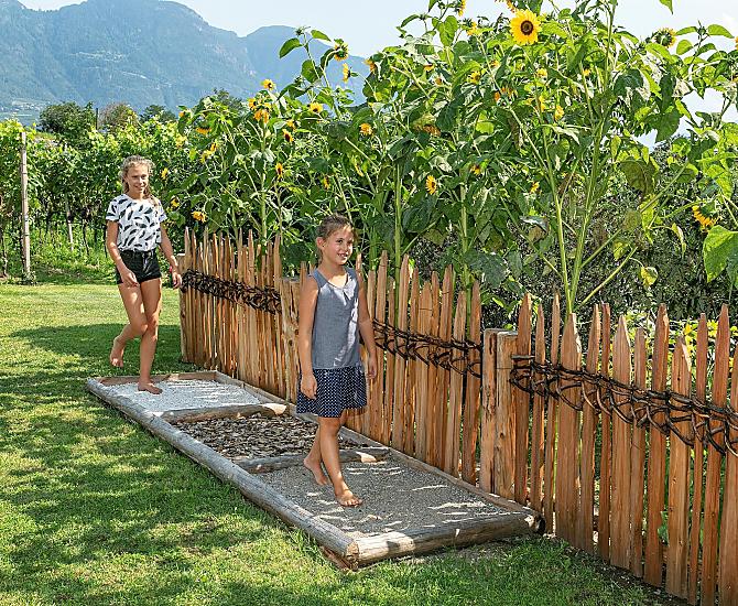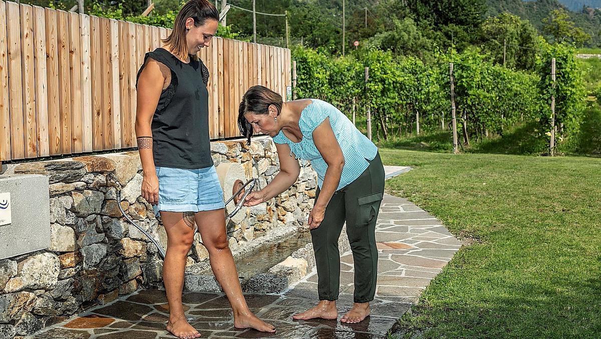 • Kneippen am Hof: Wassertreten, Armband, Gießrohr, Barfußweg