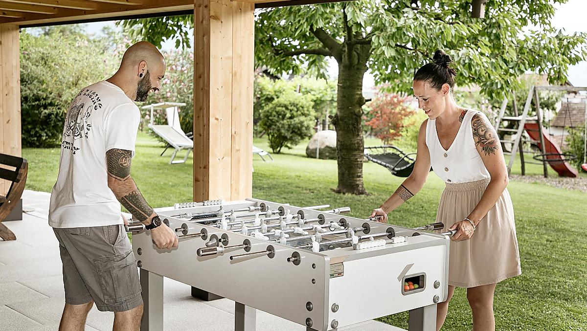 Während unsere großen Gäste auf unserer großen Liegewiese oder in der gemütlichen Sitzecke entspannen und die Natur genießen, können sich die Kinder auf unserem Kinderspielplatz mit Rutsche, Schaukel, Sandkasten und Tischfußball vergnügen. Zudem gibt es Kneippen am Hof – fünf Elemente für eine entspannte Erholung.