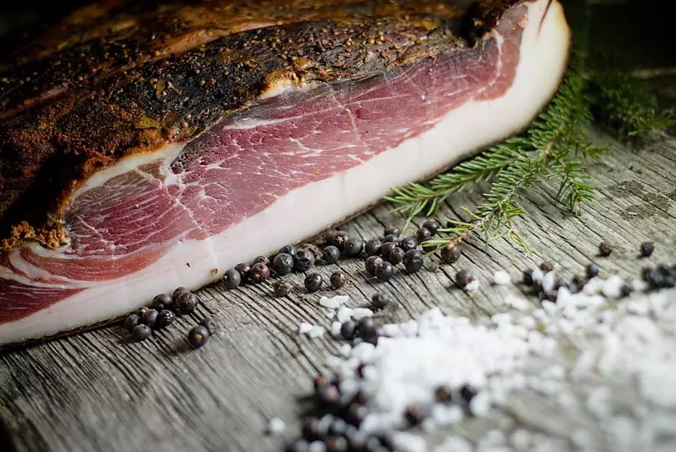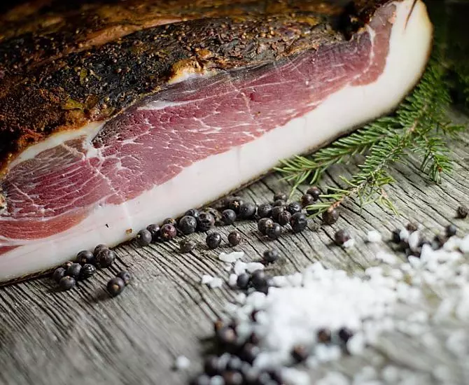 • Hofeigene Produkte, wie Speck vom Almschwein, Kaminwurzen, Coppa, ...