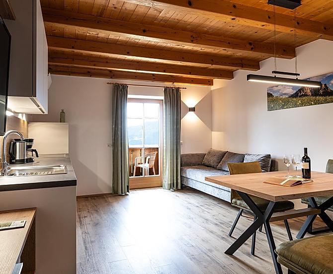 Malerisch gelegener Südtiroler Bauernhof, eingebettet in eine Bilderbuchlandschaft oberhalb von Kastelruth am Fuße des Schlern. Hier finden Sie zu jeder Jahreszeit wunderbare Bedingungen, um die schönste Zeit des Jahres in vollen Zügen genießen zu können. Unser Hof ist Ausgangspunkt vieler Wanderungen, aber auch ideal für den perfekten Skiurlaub. Der Berghof liegt ca. einen Kilometer oberhalb der wunderschönen Ortschaft Kastelruth und eignet sich hervorragend, um tolle Streifzüge durch die alpine Traumlandschaft der größten Hochalm Europas zu unternehmen. Doch auch auf unserem Viehhof kann man ausgefüllte Tage verbringen. Wenn Sie möchten, können Sie uns einen Tag lang bei der Hofarbeit unterstützen – das macht Spaß und gewährt Ihnen einen Einblick in unseren Alltag.
