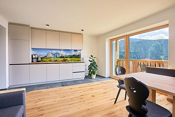 Mitten im Grünen mit fantastischem Panoramablick auf die umliegenden Bergspitzen der Dolomiten lädt der Oberfelsonnerhof zu unvergesslichen Urlaubstagen für die ganze Familie ein. Die drei neuen, großzügigen Ferienwohnungen mit Schlafzimmer, Badezimmer mit Regendusche, voll ausgestatteter Wohnküche und Balkon bieten viel Platz zum Träumen und Entspannen. Wohltuende Ruhe und traumhafte Wohlfühlmomente finden Sie auch auf unserer Liegewiese mit Bergblick, während unsere kleinen Gäste auf dem Naturspielplatz mit Rutsche, Baumhaus, Sandkasten u.v.m. ihr persönliches Abenteuerparadies entdecken. Für Begeisterung sorgen auch unsere Tiere, die Sie gerne täglich mit Bauer Andreas füttern, melken und streicheln dürfen. Tauchen Sie aktiv in unsere Welt ein und lernen Sie Südtirol von seiner schönsten Seite kennen. In direkter Nähe erwarten Sie im Sommer abwechslungsreiche Wander-, Rad- und Klettererlebnisse; im Winter tolle Ski- und Rodelpartien.