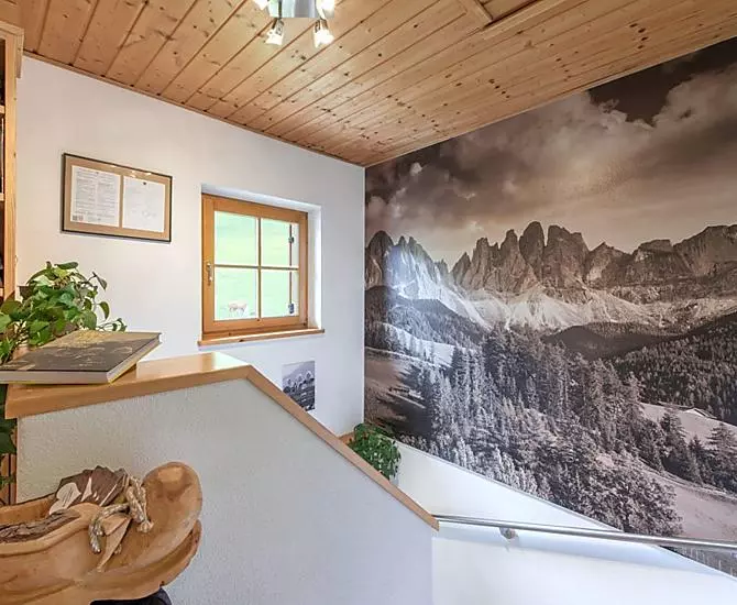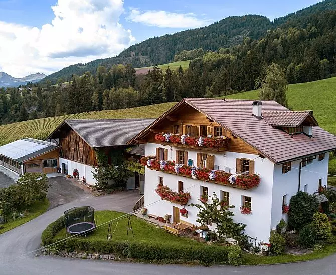Nehmen Sie die Autobahnausfahrt Klausen und fahren für ca. 2 km Richtung Brixen. Dann biegen Sie rechts ins Villnössertal ab und folgen der Straße für 6 km. Anschließend links nach St.Valentin/Pardell abbiegen.