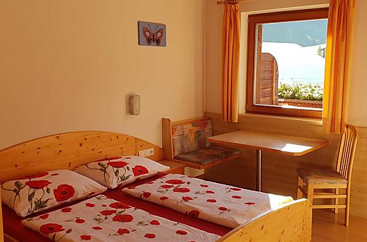 Unseren Urlaubsgästen bieten wir zwei Ferienwohnungen mit sonnigen Balkonen und Ausblick auf die Südtiroler Dolomiten sowie ein Einbett- und ein Doppelbettzimmer mit eigenem Bad. Ein kleiner Spielplatz mit Rutsche, Sandkasten und vielem mehr bietet unseren kleinen Gästen Unterhaltung. Vielseitig sind die Ausflugs- und Wandermöglichkeiten auf unserem Sonnenplateau.