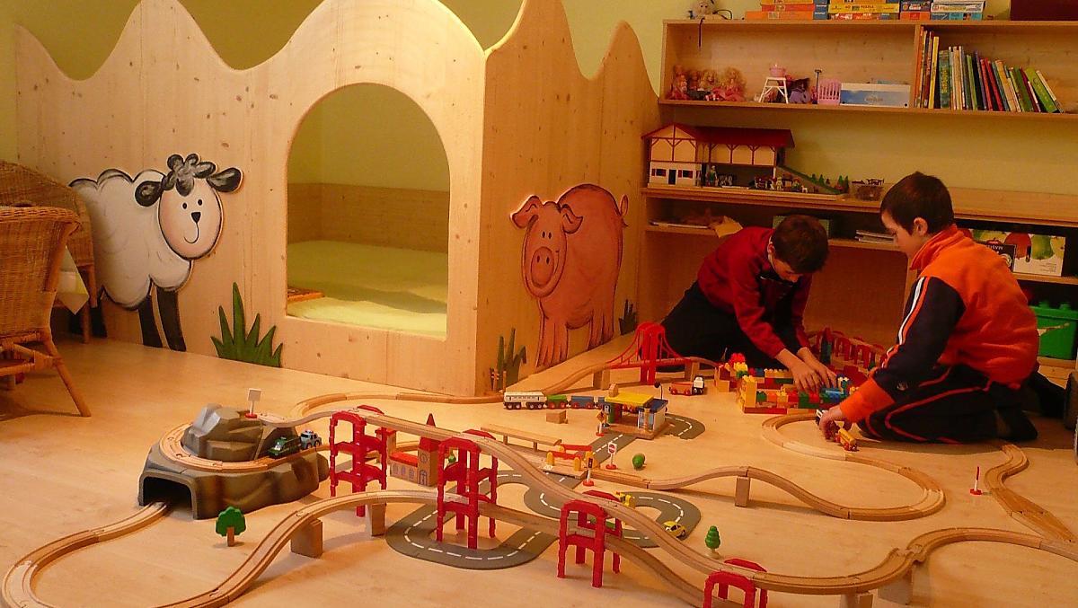 - Spielzimmer. Erlebnisspielplatz. Zirbenholzliegen am Wasserspielplatz.