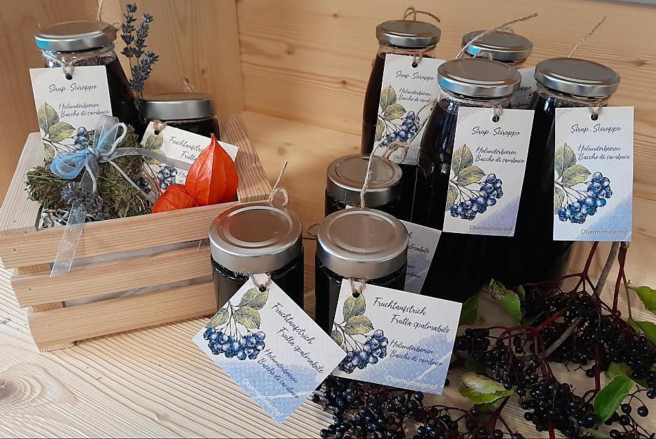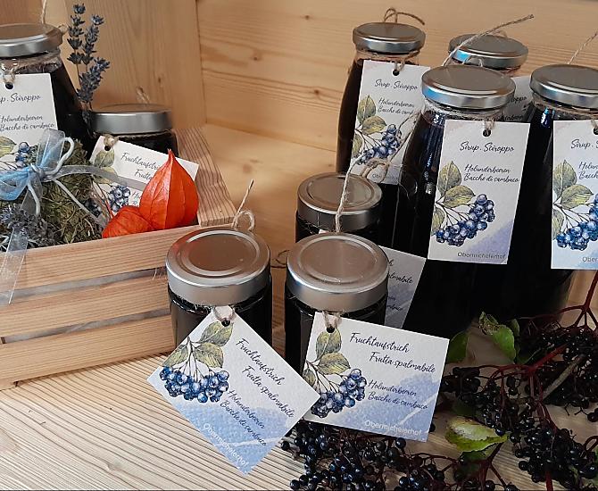 - Sirup (Holunderbeerensirup, Holunderblütensirup, Melissensirup, Pfefferminzsirup, Zitronenmelissensirup)
