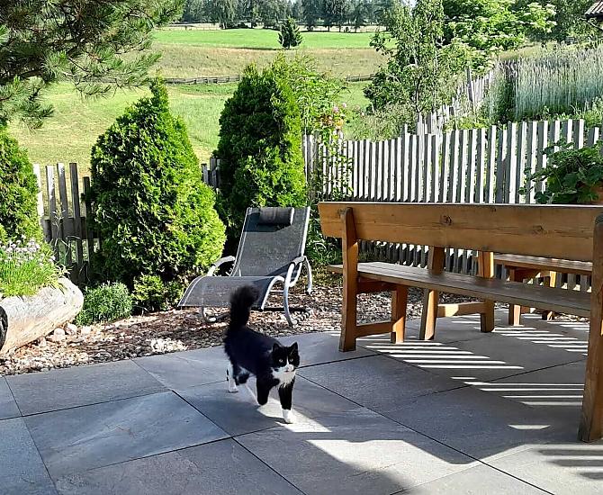 - Hofeigene Produkte beim Frühstück: Milch, Joghurt, Käse, Eier, Fruchtaufstriche, Sirup, Gelees, Kräutertee, Backwaren, Frisches Gemüse je nach Saison, Frisches Obst je nach Saison