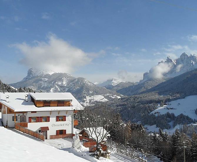 Fahren Sie durch das Villnössertal bis zum Hauptort Sankt Peter. Von dort folgen Sie der Straße Richtung Würzjoch und biegen nach ca. 1 km links nach Sankt Jakob ab. Von dort finden sie unsere Schilder "Oberschlellhof".