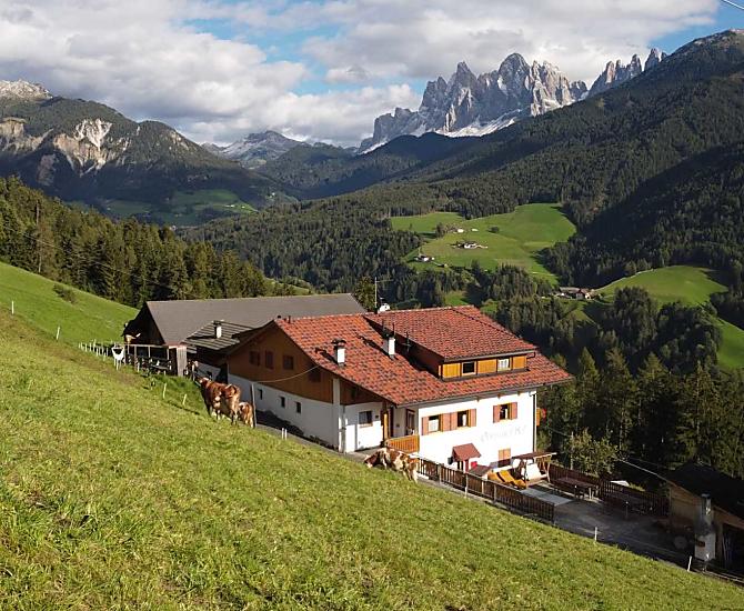 Ferienwohnungen in ruhiger, sonniger Lage mit herrlichem Panoramablick zur Geislergruppe erwarten Sie - richtige Wohlfühloasen.