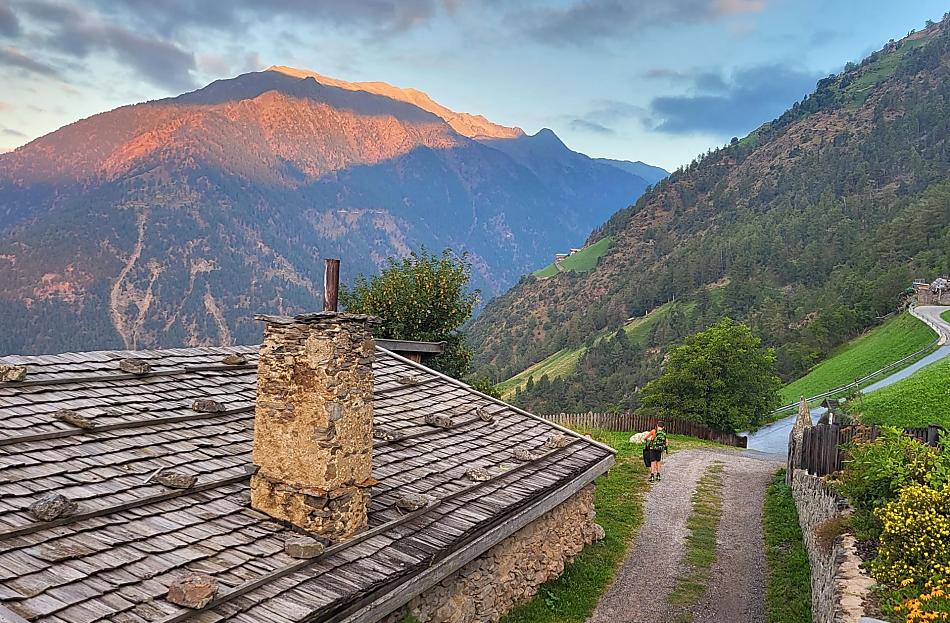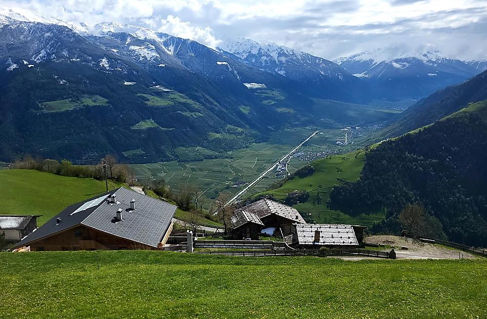 Dann der Bergstraße folgen bis zum Patleidhof 9 km. Oder über Stuttgart - Landeck - Reschenpass bis Naturns Sonnenberg-Patleidhof.
