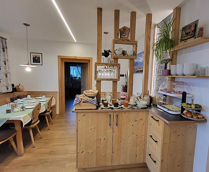 - Frühstücksraum (Holzofen, Holzboden, WLAN, Fernseher, SAT-TV, Bücher, Leseecke, Kinderspielecke, Spiele)
